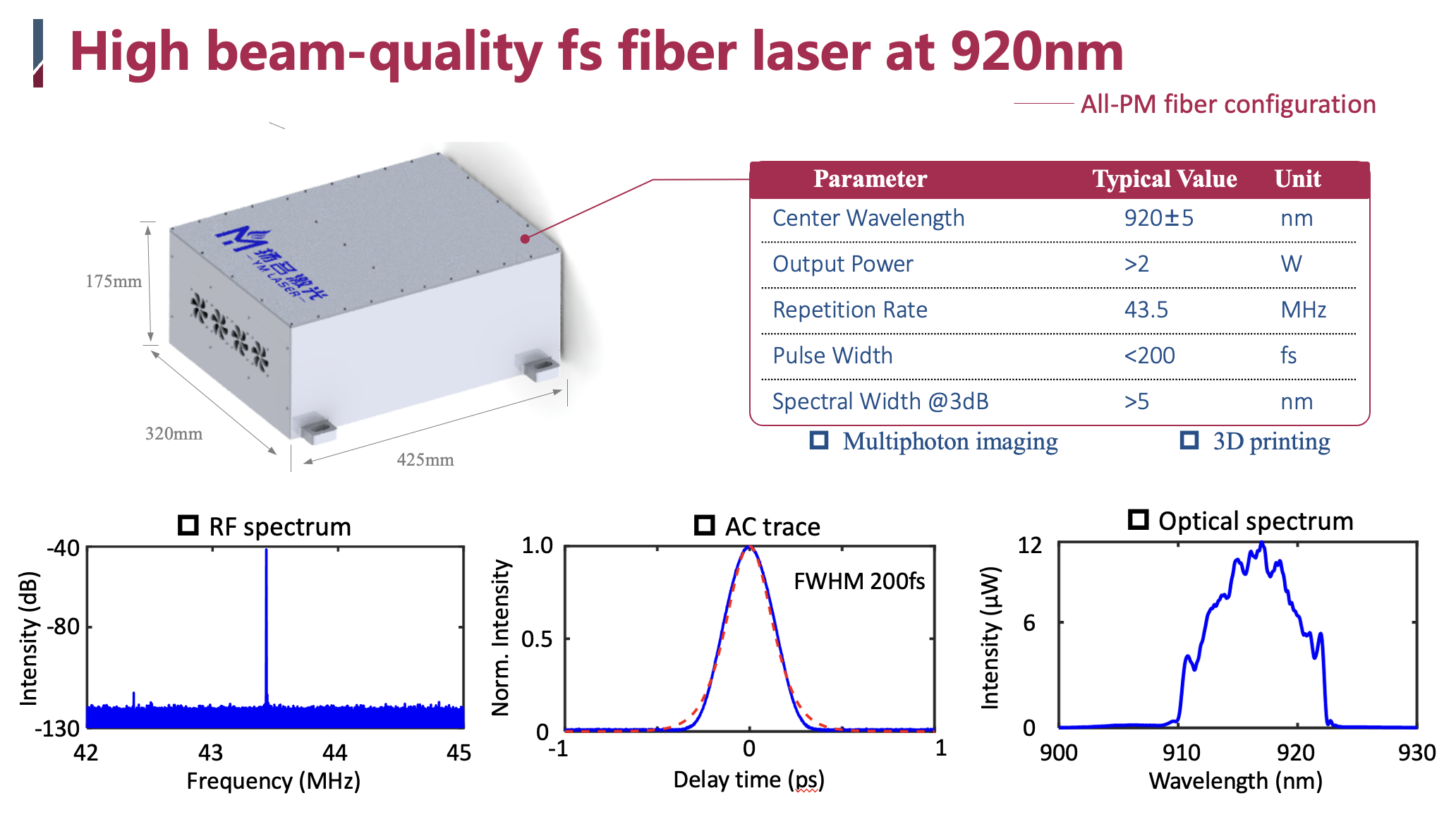 920nm 高功率全保偏飞秒激光器