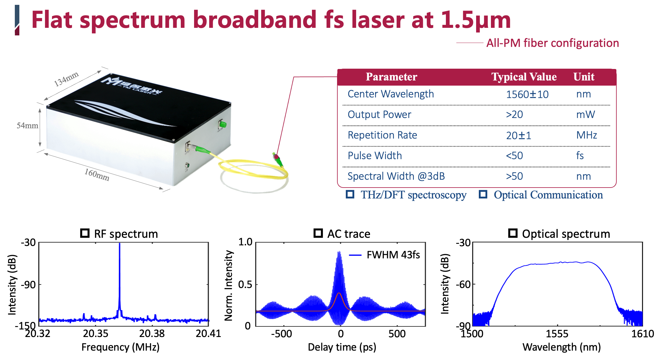 1560nm 高平坦度飞秒宽谱激光器