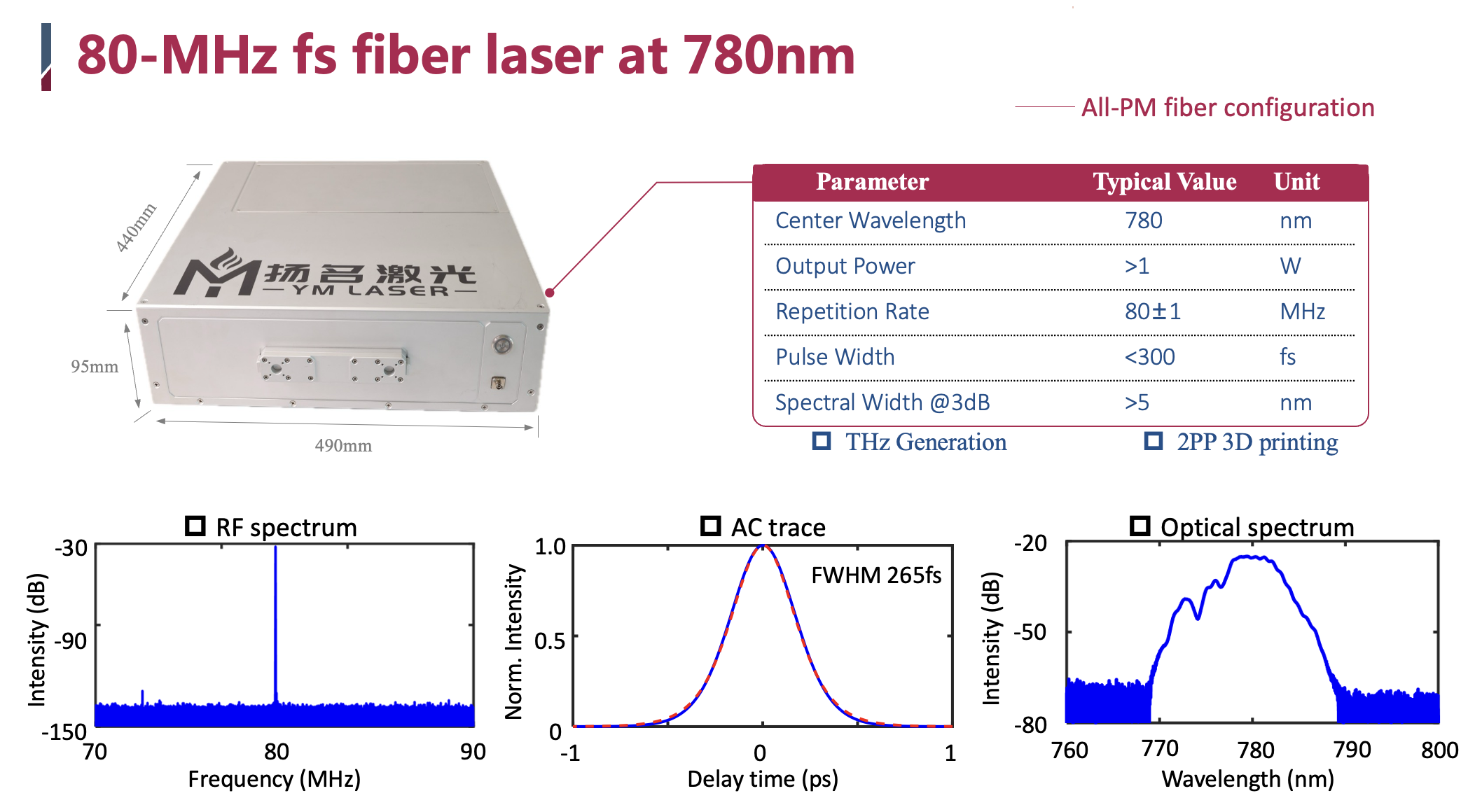 780nm 高可靠性飞秒激光器